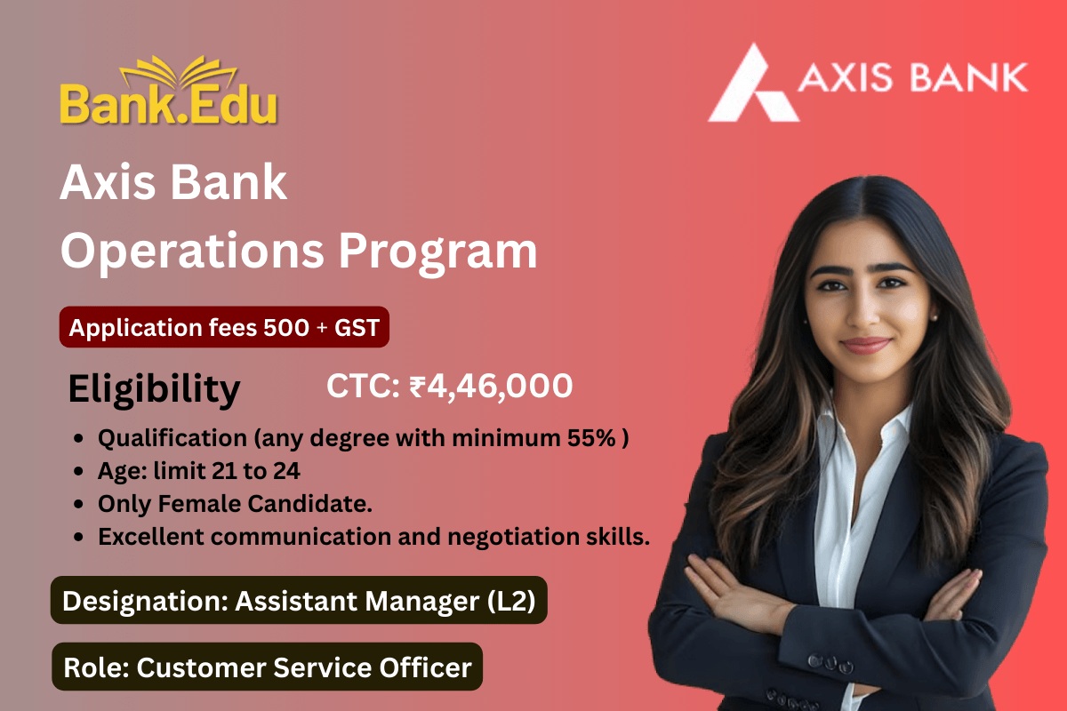 The Axis Bank Operations Program is designed exclusively for Graduate candidates who want to build a strong career in core banking operations. Offered by Axis Bank, this program equips participants with practical operational skills and industry exposure, leading to immediate placement in a high-demand banking role.